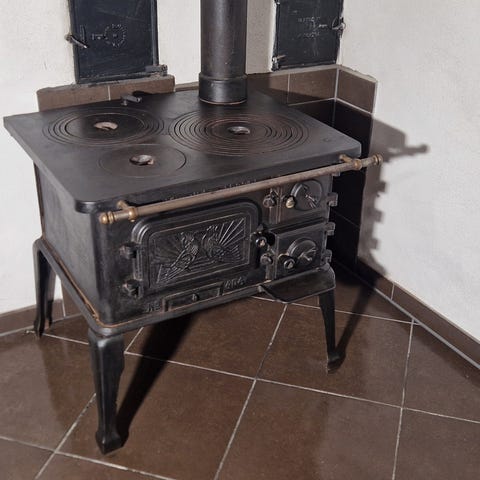 Koks ovn fra . Et bein er knekt iskrueinnfesting , men kan sikkert sveises sammen