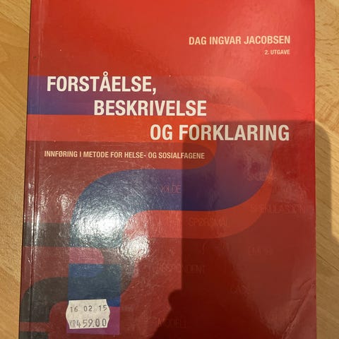 Dag Ingvar Jacobsen Forståelse, Beskrivelse og Forklaring Bok Helse og Medisin