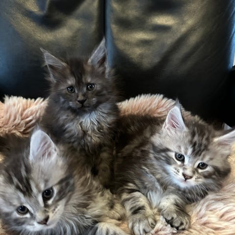 Jeg har 3 flotte jenter igjen fra kullet født 18. Mai 25. Det er ei rød tabby jente, ei bruntabby og ei flott padde jente. De er store og fine sosiale og kosete.
