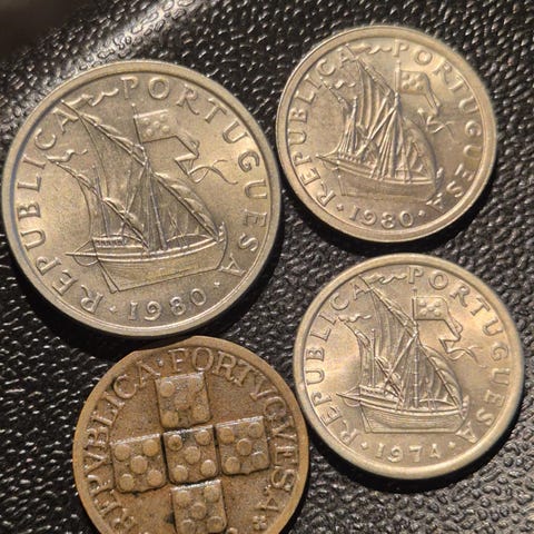 Portugal 100 escudos 1984 (4), 50 escudos 1968 og 20 escudos 1978