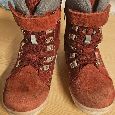 Brukt bare en vinter. Aldri vasket før og ble impregnert når de var i bruk.