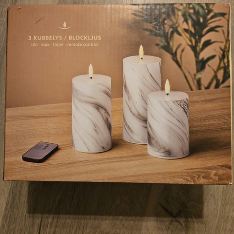 Veldig flotte kubbelys selges. De lyser greit opp som vist på bilde. Lager god stemning.