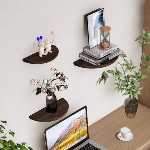 Denne stilige vegghjørnehyllen er like deler vakker og funksjonell, og passer til stuen, soverommet eller kjøkkenet.