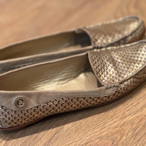 Imitert krokodille og semsket. Glitrende stener i spenne.