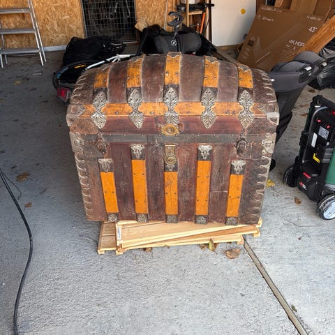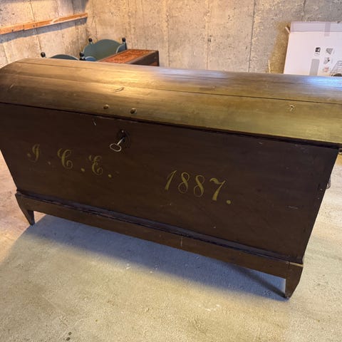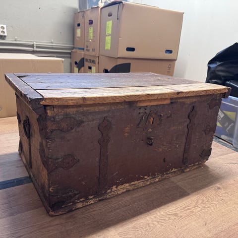 Kisten inneholder en boks/hylle for oppbevaring av mindre eiendeler.