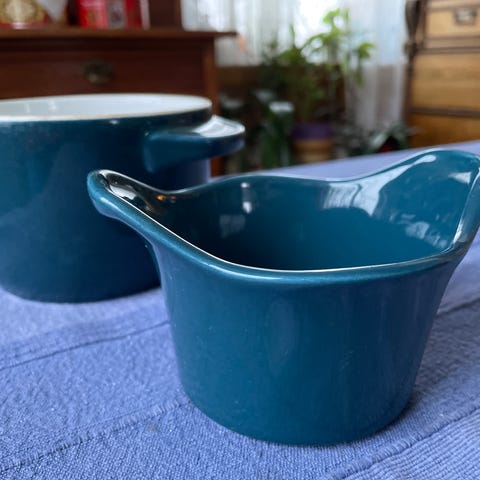 Laget av ildfast materiale, egnet for ovnsbruk.Glohane-serien kom i fargene sort, turkis og gul.
