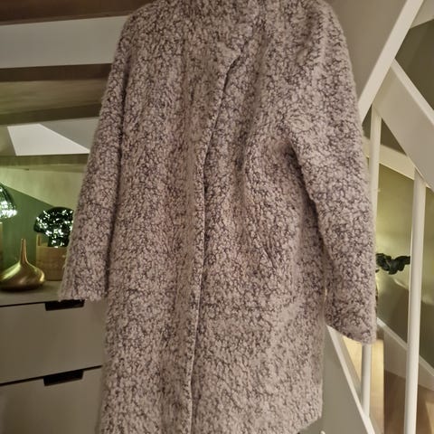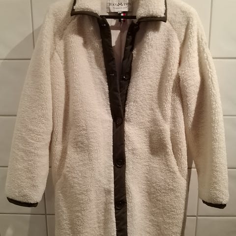Nydlig sort kåpe i teddy stoff, str 46. Varm og lett kåpe.