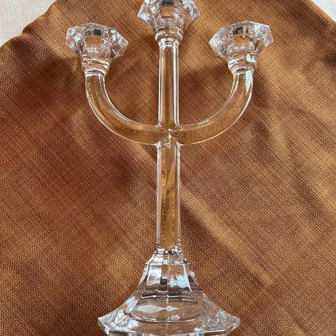 Søkeord: 3-armet 3armet krystall glass krystallglass krystallysestake kunstglass glasslysestake lysholder kronelys.