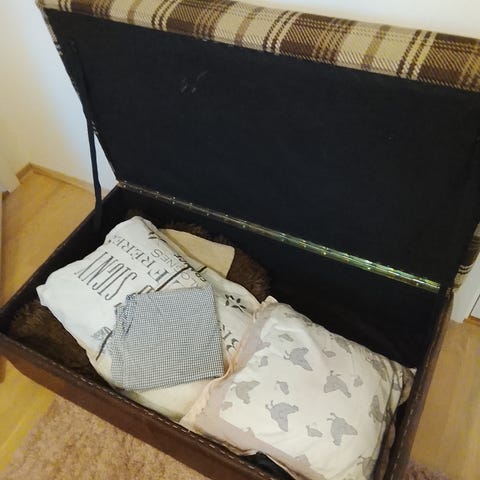 Puff med oppbevaring i grønn velour