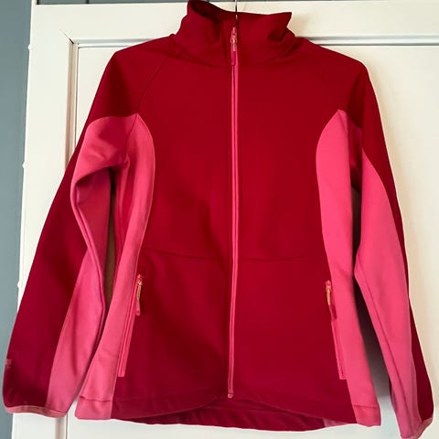 Heldre Ull/Polyester Fleecejakke i størrelse 122 for jente. Jakken er laget av en blanding av ull og polyester, har en rød farge, og er utstyrt med glidelås og lommer foran. Passer til utendørs bruk og gir varme.