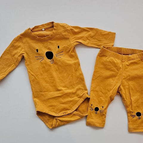Sett med body og penbukse selges. Buksen er aldri blitt brukt, body er pent brukt. Ingen flekker eller hull som jeg kan se.
