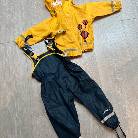 Fint regntøy fra reflex, det er pent brukt av 1 barn alle tapede sømmer er intakt☺️ det er noen flekker på regntøyet som ikke er forsøkt fjernet, regntøyet har kun blitt vasket i henhold til vaskelappen☺️