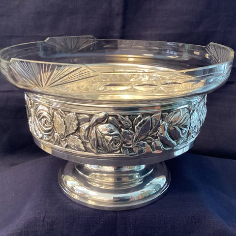 Sølvbelagt skål/ bolle med Glassinnlegg