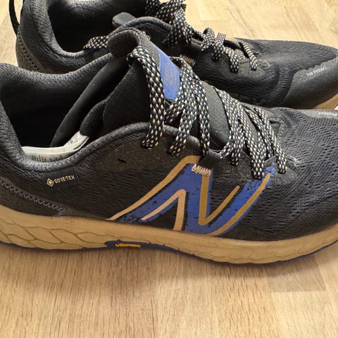 New Balance Arishi Gore-Tex løpesko i størrelse 40. Skoene er svarte med detaljer i neonfarge og har en Fresh Foam mellomsåle for demping. Gore-Tex membran gir vanntetthet og pusteevne. Sålens mønster gir godt grep. Egnet for ulike typer aktiviteter.