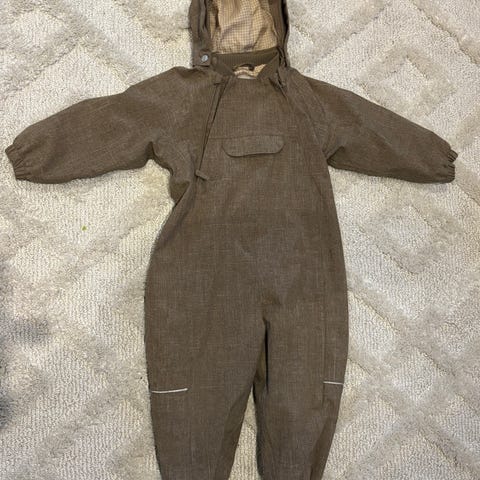 Grønn parkdress/skalldress/vårdress fra Reflex. Sømmen i baken har gått opp og må sys. Noen nupper/bruksmerker på midten (litt på knær, men lite). Strikkene er fortsatt hele, men spesielt den ene begynner å skrante. Har vært en super dress. Anbefales!