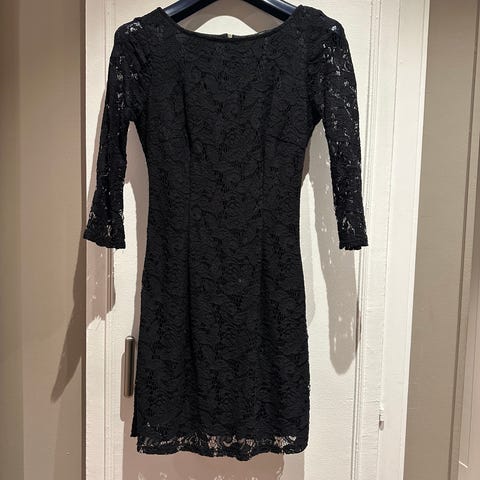 STELLA NOVA Festkjole i størrelse XS, fargen svart. Kjolen har lange ermer og er dekorert med paljetter og broderi, som gir et teksturert utseende. Den har glidelås på baksiden for lukking. Passer perfekt til formelle anledninger, fest, nyttårsaften, ball og lignende. Foret med behagelig innersving. Pent bruk, røyk og dyrefritt. Nypris 2500,-