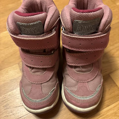 Rosa støvler med masse refleks. Gode og varme. Mistenker at de ikke er tette nok til å vasse i søledammer, se de siste bildene.