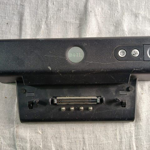 Eldre Toshiba portreplikator for kompatible bærbare PC-er. Gir tilgang til flere porter som VGA, USB, lyd og nettverk. Ikke funksjonstestet.