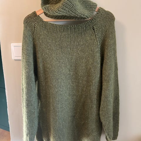 Ny burgunder hjemmestrikket genser. Strikket i supermykt, lett alpakkagarn som varmer. Garnprodusent oppgir at den kan vaskes i maskin på ekstra skånsomt program 30 grader, men anbefaler håndvask. Bruk vaskemiddel for ull og silke, tørkes flatt.