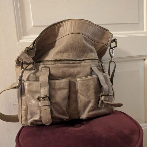 Super fin veske i kalveskinn fra MOO i en lys grå farge. Vesken er kun brukt 1-2 ganger, og har blitt liggende.