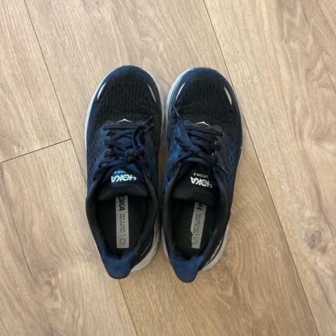 Pent brukt sko fra Hoka i str 38 2/3 . Brukt men fortsatt mye sko igjen. Et lite hull på siste bildet. Søkeord: Hokasko,joggesko,løpesko,treningsklær,trenigssko
