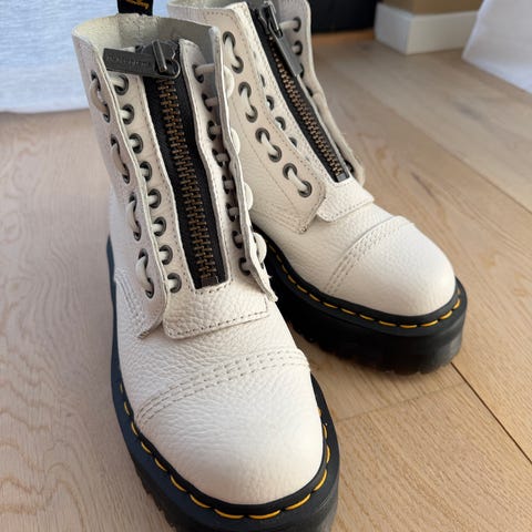 Dr. Martens plattform boots i skinn, modell Sinclair i str. 41, farge Vintage taupe. De er kun prøvd på, ikke brukt.