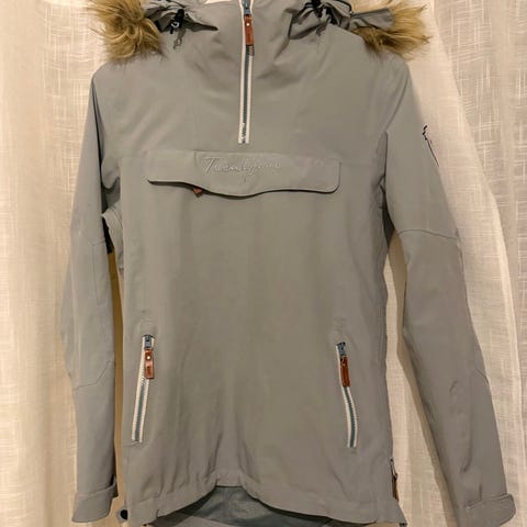 Selger en pent brukt Twentyfour anorakk i god stand. Jakken er i en flott petrol blåfarge med fuskepels på hetta, og har praktiske lommer med glidelås. Puster godt, har glidelås i sidene for lufting og enkel av- og påkledning.