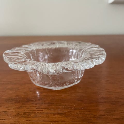 Magnor lysestake i hvitt frost, design Finn Schjøll, H= 6,7cm, D= 9,7cm, ingen bruksmerker, som ny, selges for 150kr ink frakt.