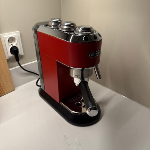 Pent brukt espressomaskin, som er veldig enkel og praktisk å bruke. Perfekt for deg som vil lære deg å lage god kaffe!