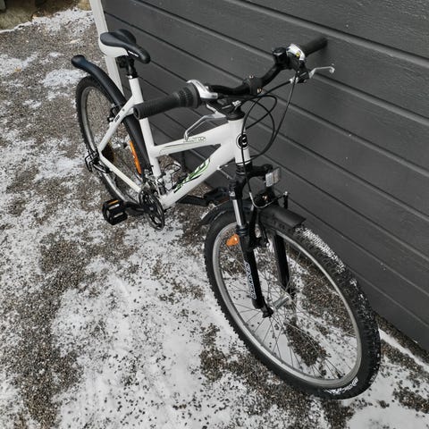 Dvs Trek 24 Mountainbike i blå farge med stålramme. Sykkelen har 24 tommers hjul