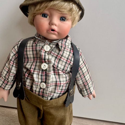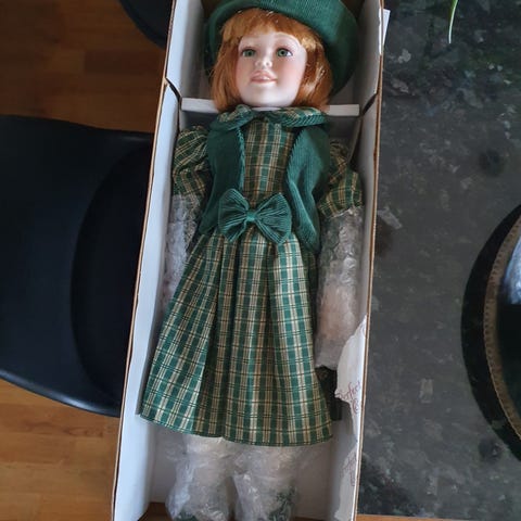 Høyde 40 cm. Er oppbevart i original eske. Håndlaget/håndmalte trekk, samleobjekt (Se esken)