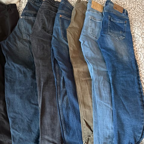 5 bukser : 3 jeans 1 cargo ,1 gaupa turbukse