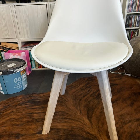 6 stoler i eik plast, to av de har merker på sete ellers pent brukt.