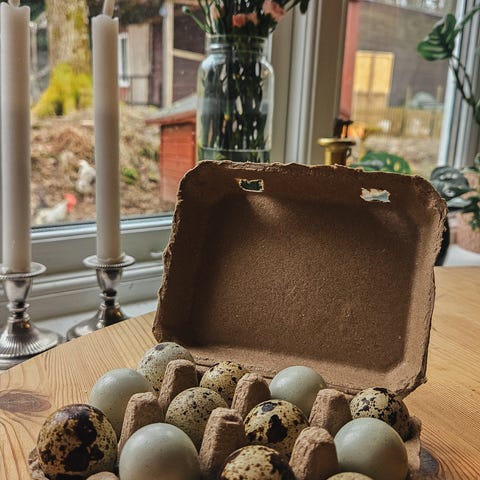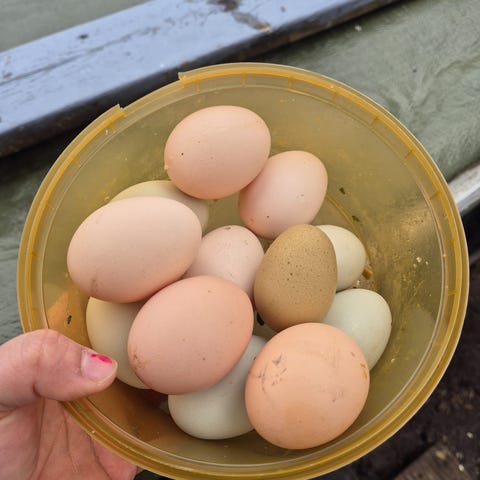Ferske og fargerike egg fra vårt lille småbruk selges 🏡🧡🥚