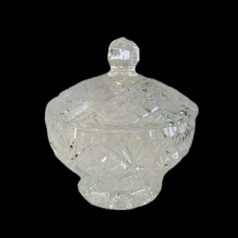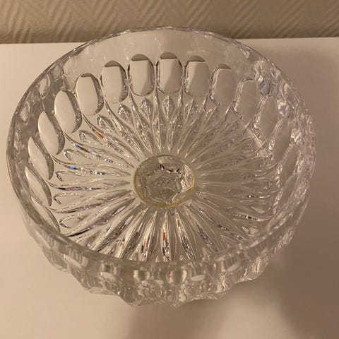 Stor krystallskål med lokk.