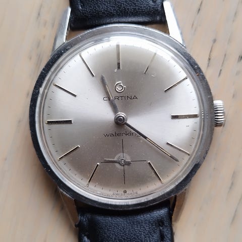 Selger en vintage Certina Waterking 215 automatic. Klassisk dressklokke med datovisning. Uret går og holder tiden fint. Lenken som sitter på er ikke original, men passer bra. Får ikke åpnet baklokket på denne. Har en annen som er helt lik. regner med at det er samme urværk. (urværket på bildet er altså ikke fra denne klokka)