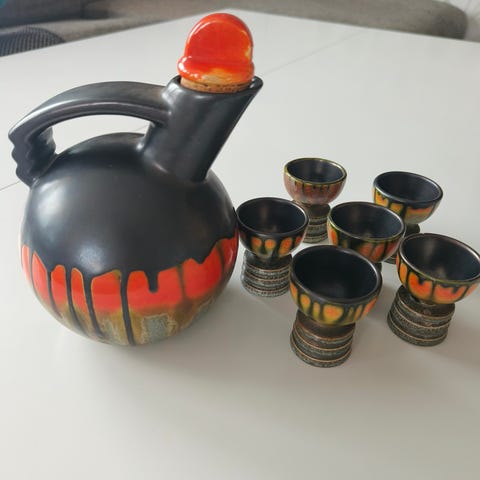8 stk kopper ( 1 med skår,se bilde), 7 cm høye og 11 cm i dm