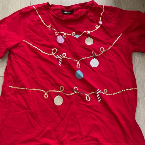 Fleecesett og T-skjorte med julemotiv. Selges samlet. Vanlig i passformen, ikke oversized.