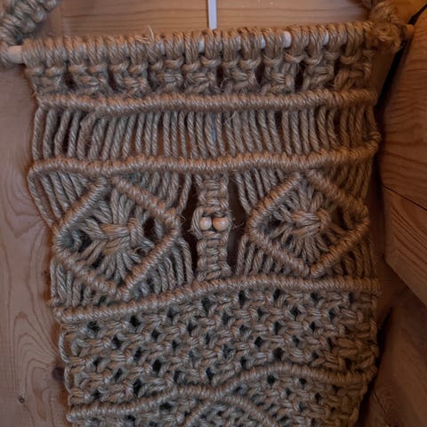 Gammel, dekorativ makrame ugle i god stand.