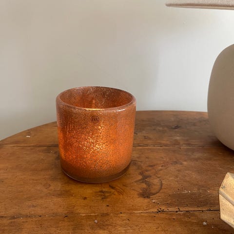 Zoe er en dekorativ firkant lyslykt av glass som er farget i en vakker brun/lilla nyanse. Kjøpt på plantasjen, er utsolgt.