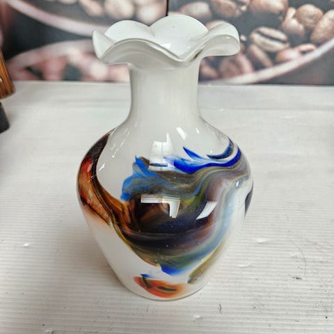 En veldig pen flaske i en vakker blåfarge, som himmelen med en havbris, dekorert med blomster. Flasken får en vakker farge når den utsettes for sollys, og tiltrekker seg oppmerksomhet med sine livlige farger. Den vil gi et fint preg til en vinduskarm, hylle eller kommode i en hytte ved sjøen eller på fjellet, eller faktisk i ethvert hjem.