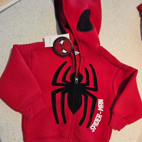 Selger veldig fint hettegenser i rød farge med Disney figur. Til 5-6åring.