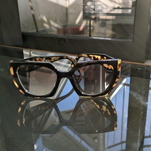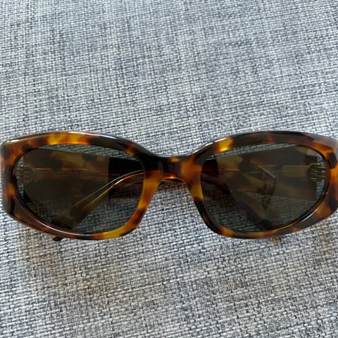 Solbrillene har noe bruksmerker og selges rimelig. En fin kombinasjon av retro og moderne uttrykk, som passer til de fleste antrekk.