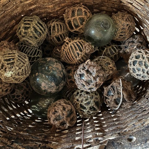 Flott liten samling av maritim t utstyr mm.alt er brukt,men fin stand-Den store flotte taljen/blokka har noen sprekker.den er flott patinert/fin pynt-bud