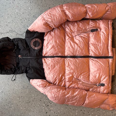 Vinterjakken har hette. Glidelås og knappe lukking. Snor for regulering i livet. Høyre regulering kan ikke justeres men dette har ikke praktisk betydning. Jakken har 2 lommer.
