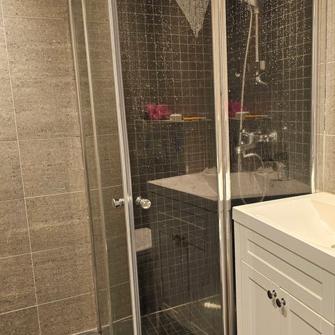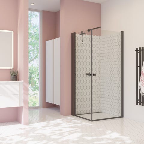 Dusjhjørne 90x90cm buet svart matt høyden 190cm.