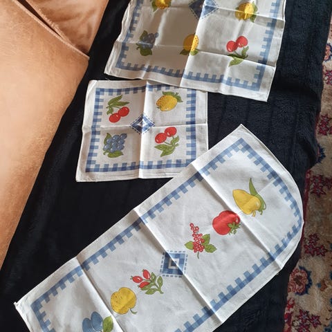 Selger to stk vintage dynetrekk i fine pastellfarger. Lukking i siden med knyting. Normal bruksslitasje, ingen hull, men noen knytesnorer mangler.