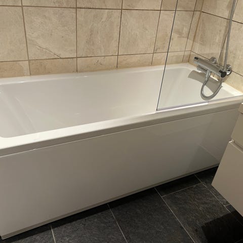 Badekar i hvit emalje med målene 170 cm i lengde og 69 i bredde.