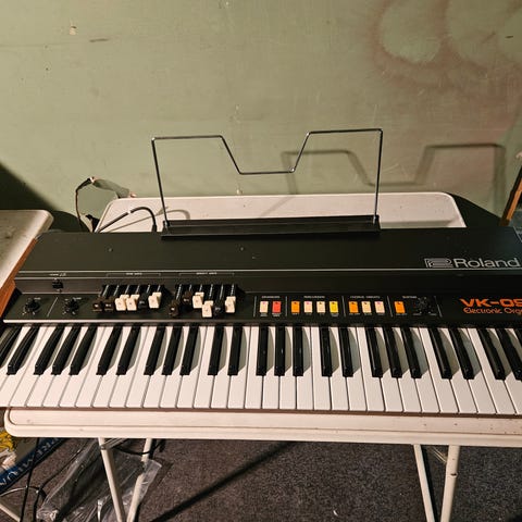 The Yamaha SK10 is a 49 key, 7 voice analog ensemble synthesizer, featuring organ, string, and brass sections, brilliance, attack and release buttons, volume pedal input, and vibrato. The organ section features 3 stops.