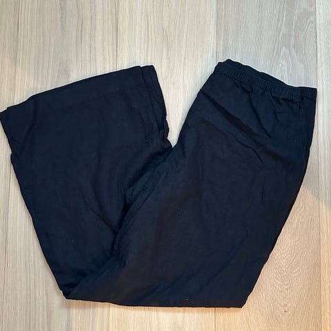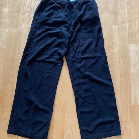 Svart bukse i myk, krinklet bomull.